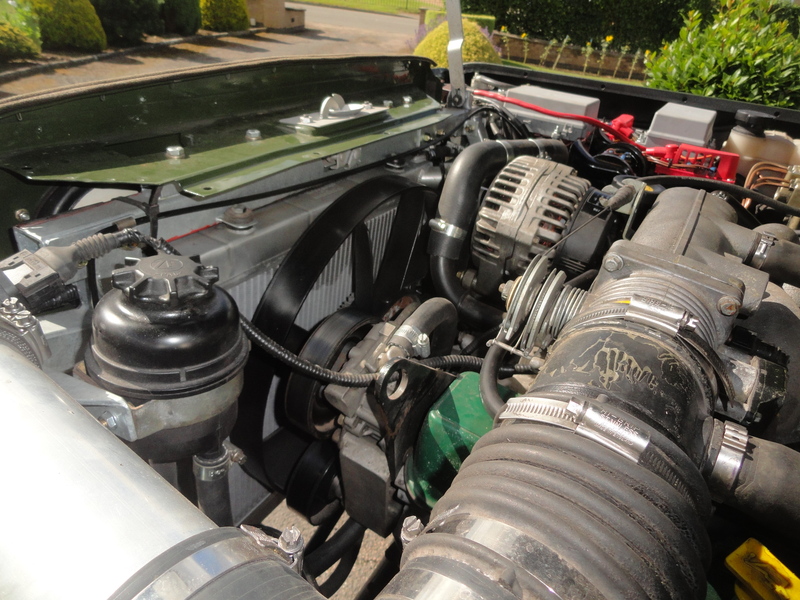 Because I modified the front end considerably internally (but it still looks normal Series Landie outside), I got a motorsport radiator made up which just fits between the back of the headlamps and the viscous fan. I just duplicated the Range Rover P38 cooling system layout, and have no issues with overheating.