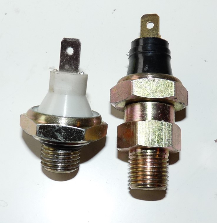 I mean the oil pressure warning light switch, one I had started to flicker at hot tickover, although had oil pressure on the dash gauge also I have a gauge on the oil pump and that was ok pressure, tried two second hand switches but they were also faulty, most of the ones on line seem to have a very short thread compared to the factory ones, in fact the picture of a genuine one at £45.55 ! on rimmers site is the spitting image of the Britpart one, I emailed them and they are insintent its the right part picture even though its nothing like the three factory switches I have !!!