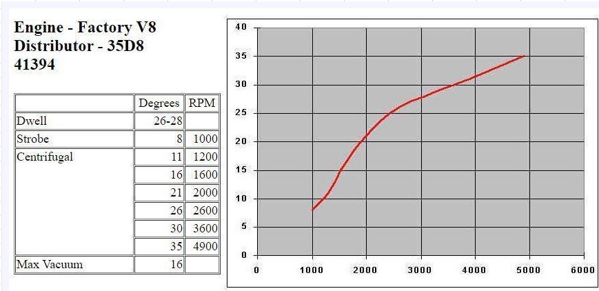 The distributor data shows 35° maximum as RPM increases, at WoT this would be the only advance in place, there would be little or no vacuum. In this condition the table I've created would be giving 40° - Not massively different.