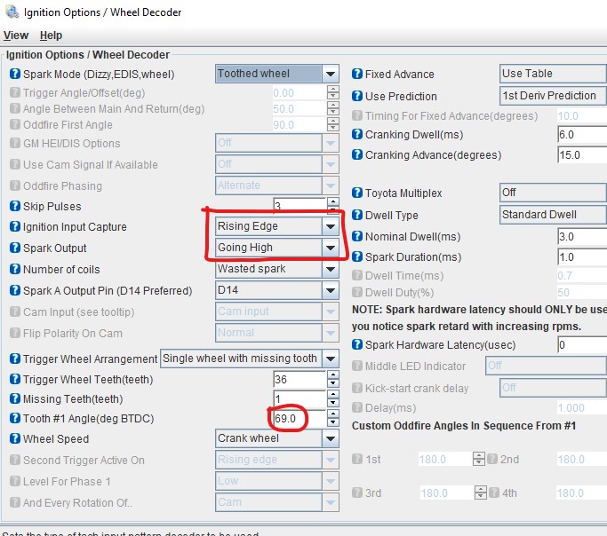 However this shouldn't really make any difference as I'm not simply measuring the physical location of the missing tooth with respect to TDC I have checked the point which the spark actually occurs with a strobe. This is initially done by setting "Fixed Advance" setting to "Fixed timing" which triggers at whatever setting is entered in "Timing For Fixed Advance". For setup I put this at 10° so that I could read it off against the timing mark I have on my crank pulley from using the distributor, this was reading spot on. When I re-enabled the table I could see that the timing was indeed triggering at 30°. I don't have a mark on the pulley for this but could see it was around 3x as far as the 10° mark and the teeth on the 36-1 also verified this (at least to a degree or two)